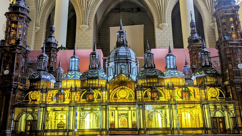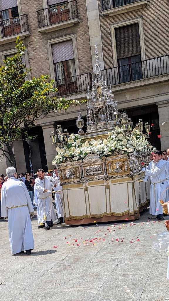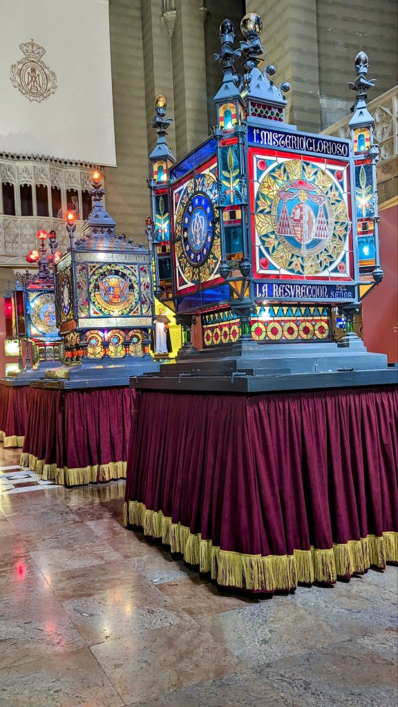 Another (bigger) procession that happens in October at this square is called the Fiestas del Pilar, where they parade huge crystal lanterns through the streets to the Cathedral. They are on public display when in storage.