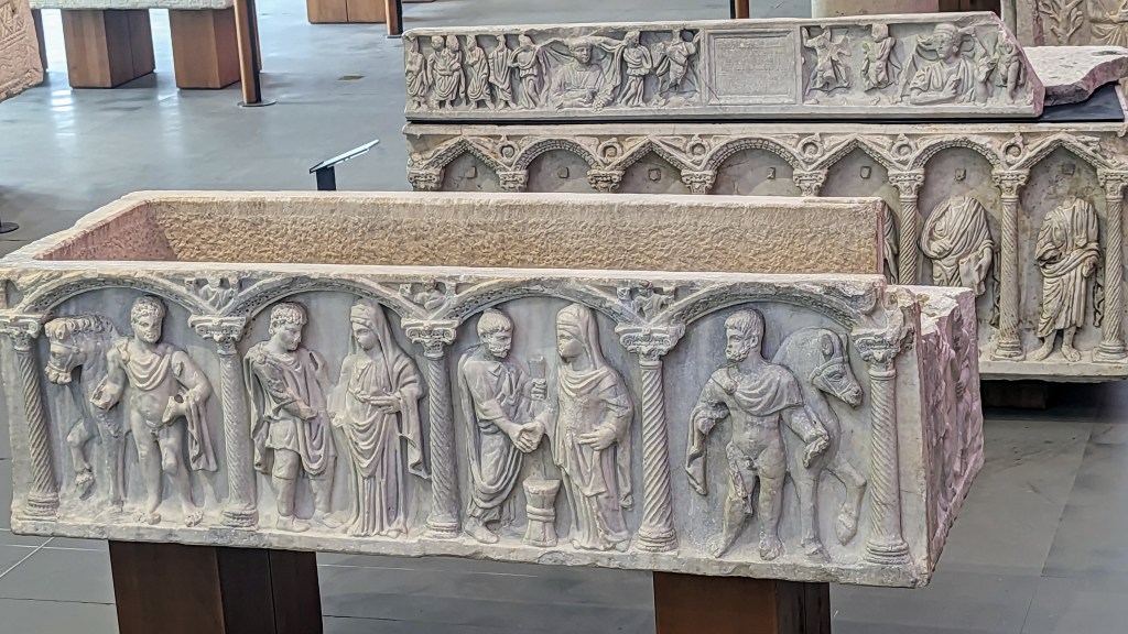 …and the sarcophagi! The carvings were spectacular and mostly done on Carrera marble! Dan has a difficult time cutting a piece of Carrera marble into a straight line…with electric tools! Actually, I’ve never had the opportunity to work with Carrera marble, but I’m watching videos so I can design our sarcophagi… Please don’t be upset if they just end up as misshapen headstones, though.