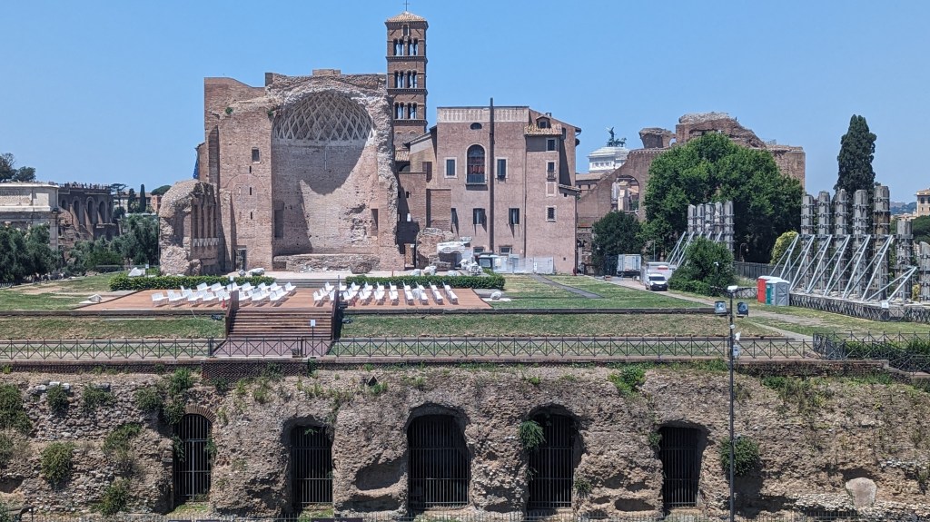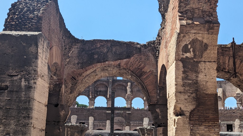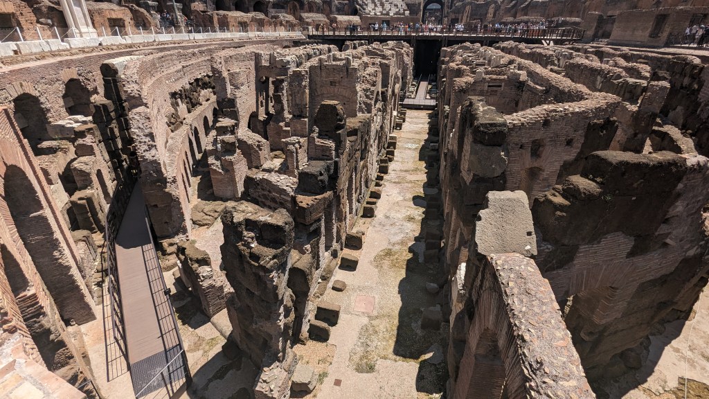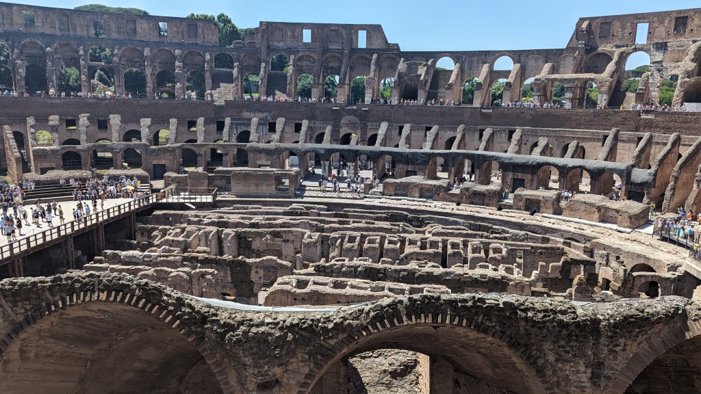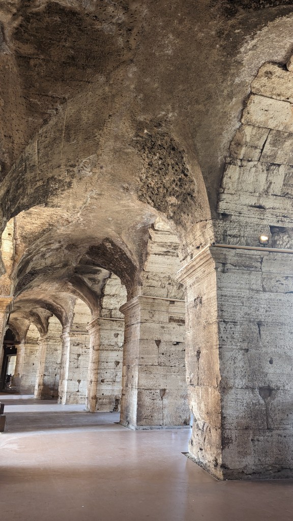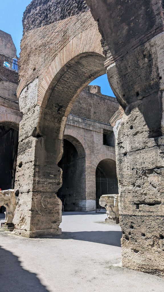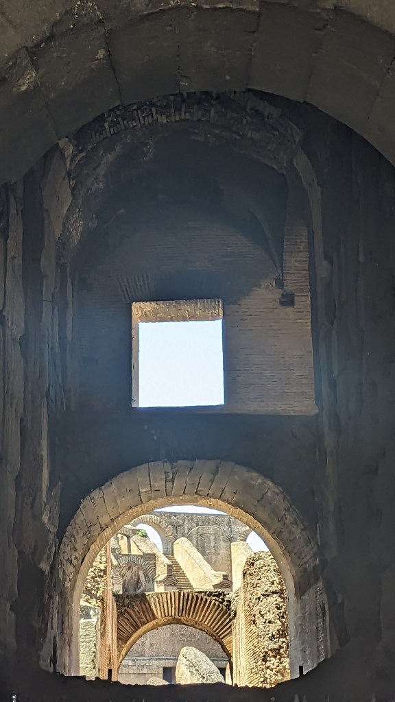 The Colosseum’s size is impressive! It held between 50 and 70 THOUSAND people! That’s a Superbowl stadium full of people watching the poor/slaves maime and/or kill each other! And the ‘sport’ started as a funerary celebration (“Oh my uncle’s died so let’s organize that some gladiators maime each other”!?!?!) I’ve realized that I wouldn’t have made a good Roman; of course, I’d have been a servant and I definitely wouldn’t have made a good servant! Just ask Dan π I’m staying quiet! π€