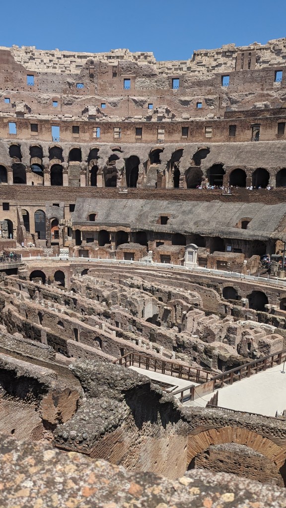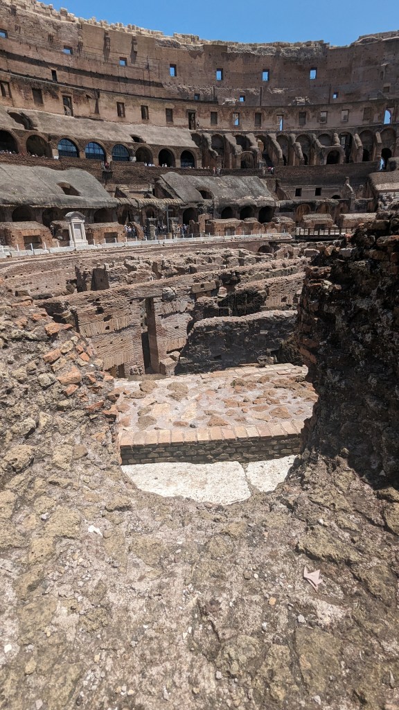And so, it was time to go to Rome. We’d booked a tour of the Colosseum that included the Colosseum floor and underground so I was very excited as I’d been wanting to do this for 38 years. Sadly, it was cancelled the day before (supposedly because of Global Warming protesters, but I think they just didn’t have enough people as we didn’t see any protests!) We still managed to book a (regular) last-minute tour so off we went.