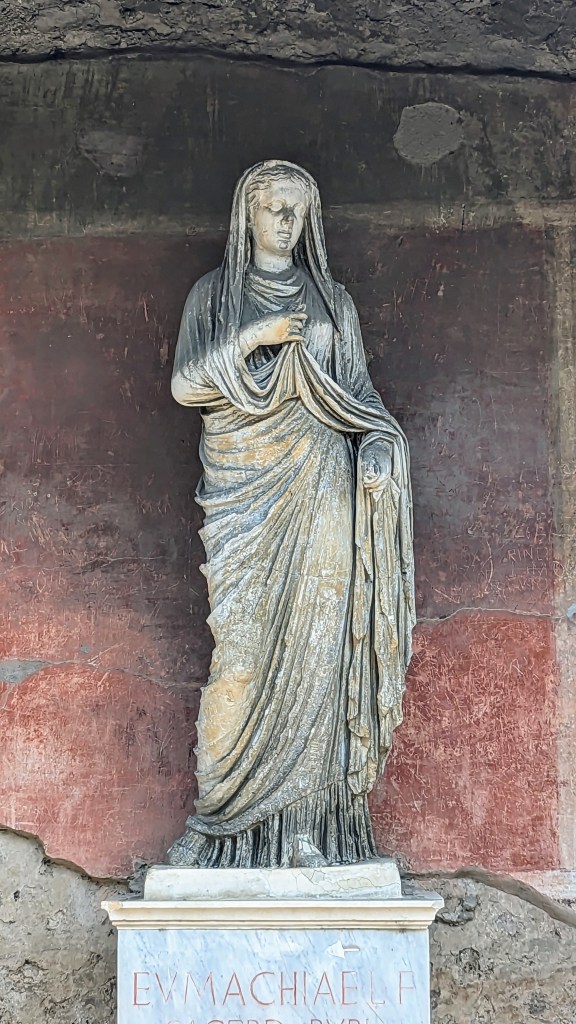 Not many original statues remain in place. Unfortunately, the real Pompeii was packaged up long ago, shipped out to places far away; some statues were replaced by replicas while others just disappeared from their original places with no markers.