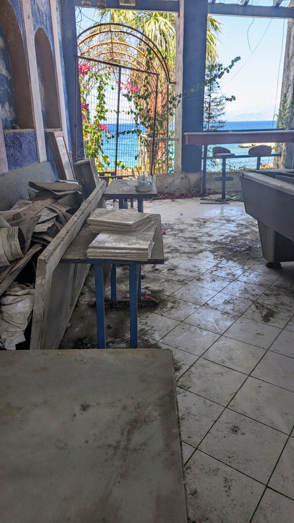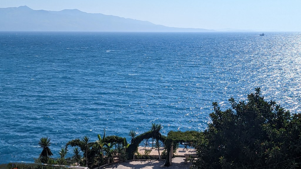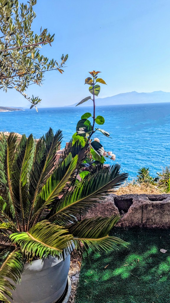 Our new home (for three nights) is heavenly; we have our own terrace facing the sea! I’m not sure I’m going to leave this space until we leave Sarande!