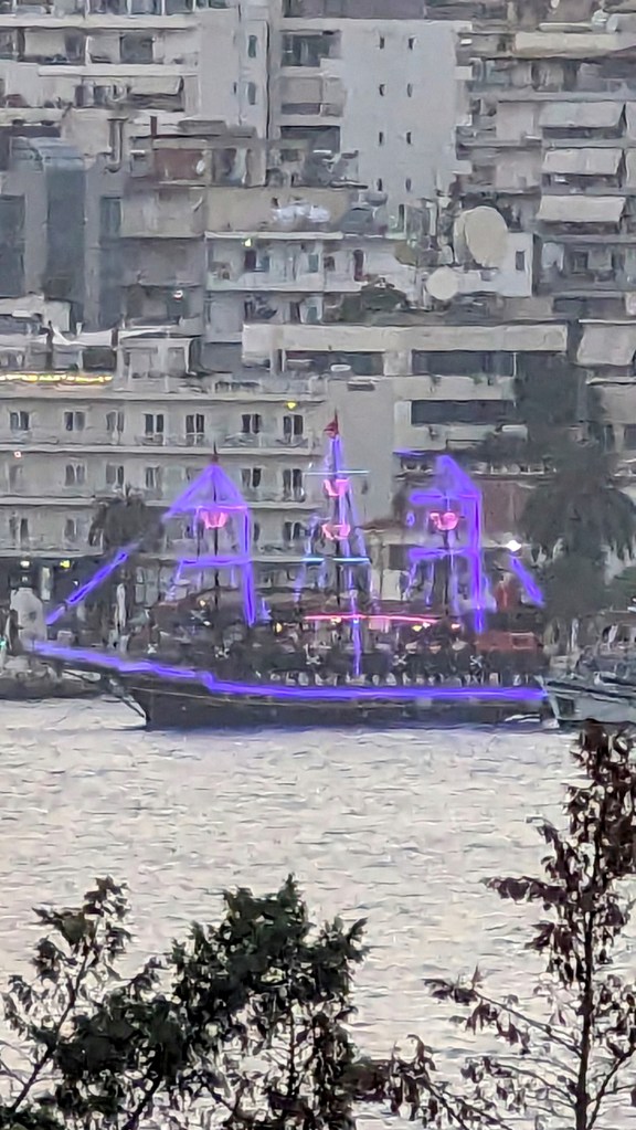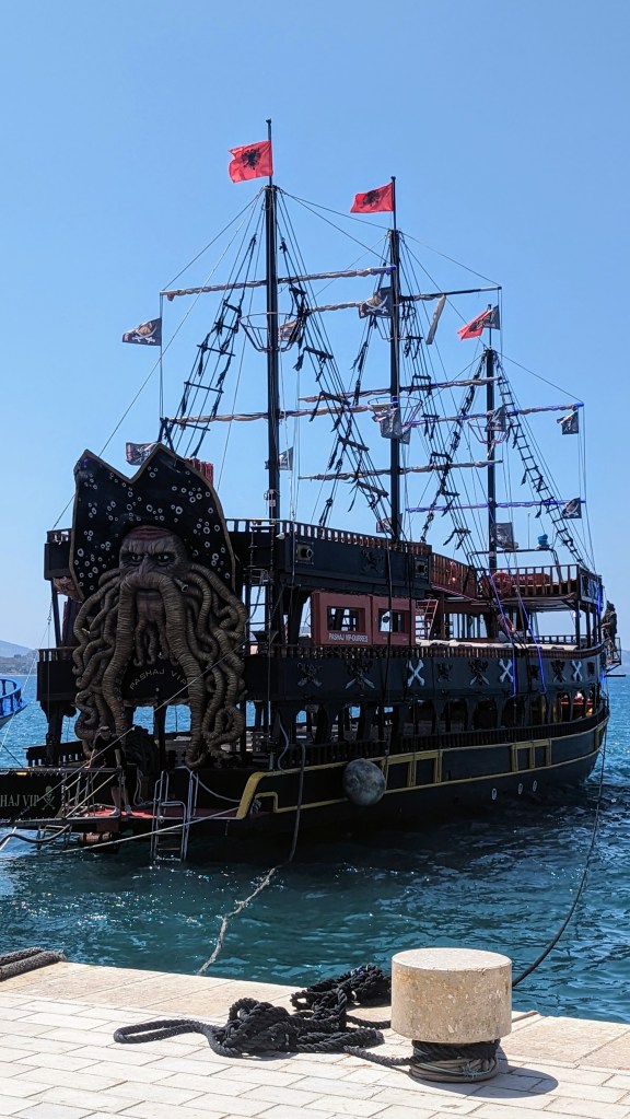 Sitting on our porch for the evening, we watched the sun set over Sarande port and the pirate ship switch on its lights as we listened to the waves (and night life) below. What a lovely way to end the day!