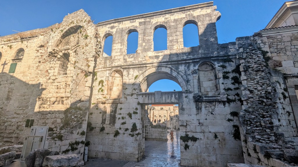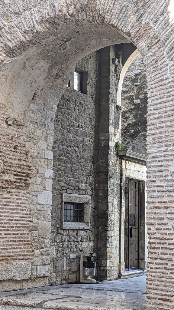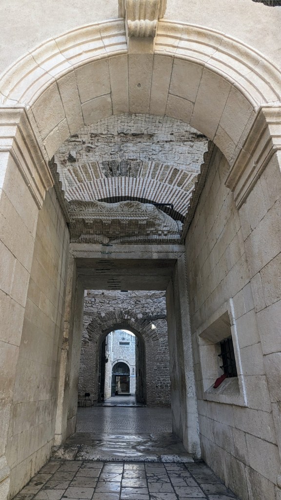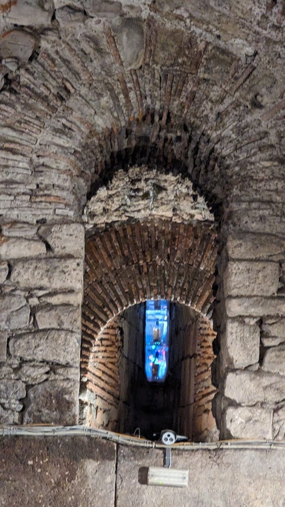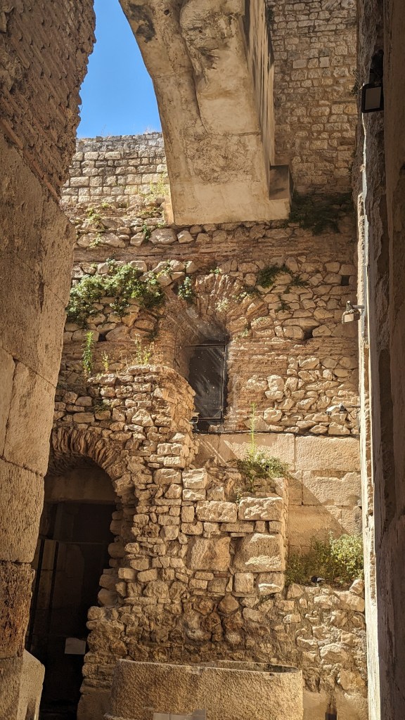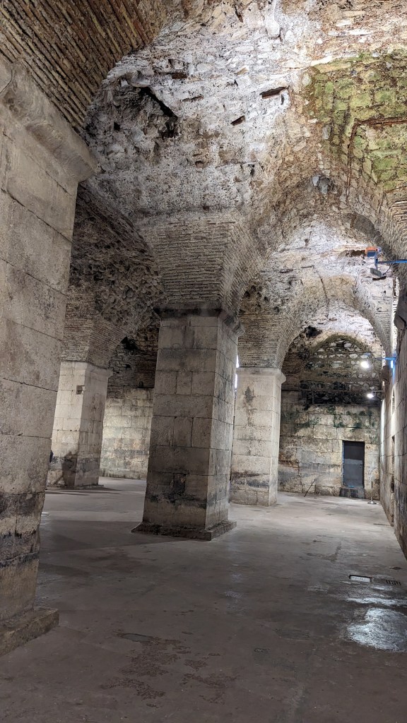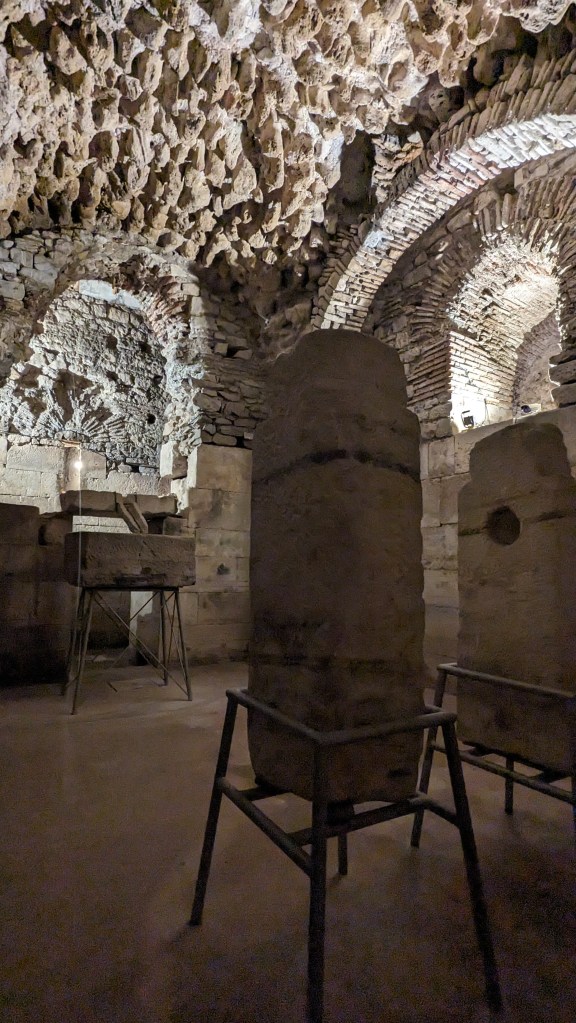 Diocletian’s palace is a really large part of the old town. Most of the above ground structure lies in ruins. Diocletian lived there while he was Emperor from 284-305 AD and you can still see the Roman parts. However, they have excavated the Podromi, or cellars of the palace. They were still actively working on excavating and shoring up different parts while we were visiting.