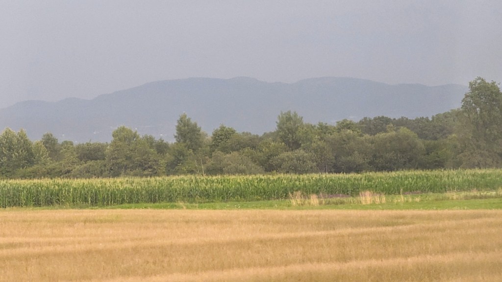The distance between Split and Zagreb is 210 km. The train was supposed to leave at 8:15 am but was half an hour late. The train was comfortable and it was much better than walking, but not much faster 😂 It was a bit like driving a car 210 km in first gear, but a bit more tedious. We went through some beautiful countryside, but were watching a storm approaching the whole way.