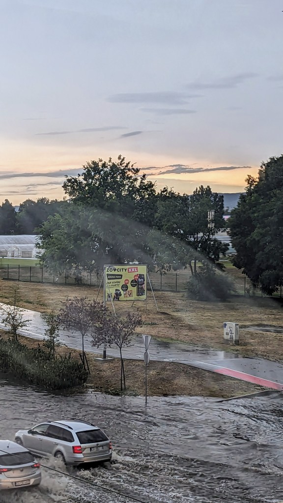 We were hoping to arrive in Zagreb before the storm, have already eaten, and been safely ensconced in our air bnb room. But it was not to be; the storm hit at around 3:30 (remember that it was only a 210 km journey)…