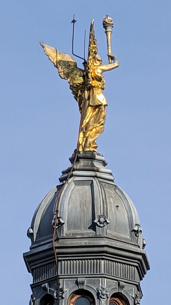 Walking around the next morning, we realized how bad yesterday’s storm had been…tree limbs were strewn around and broken glass and other things were everywhere. People were out early trying to fix everything.