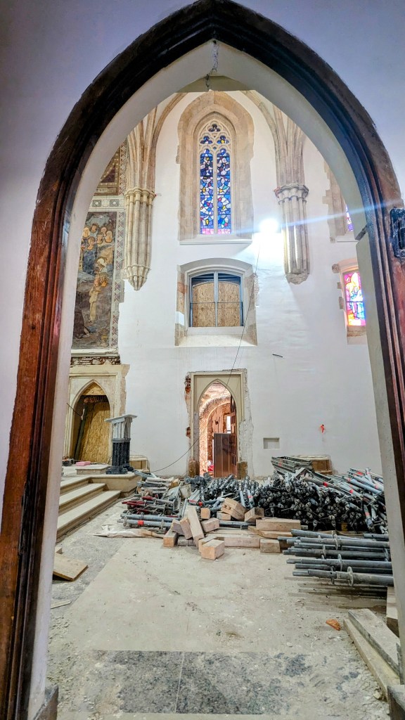 And another door was open beneath some scaffolding, and behind some plastic so I snuck in to see what was happening…repair work!