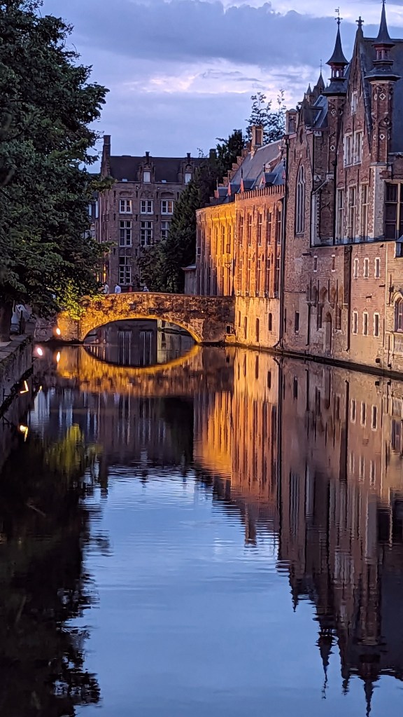 Our last day in Bruges was lovely. We got some great photos both by day and night, had Belgian waffles 😋, found a beautiful park, and relaxed. And the sun DID come out for a short time!