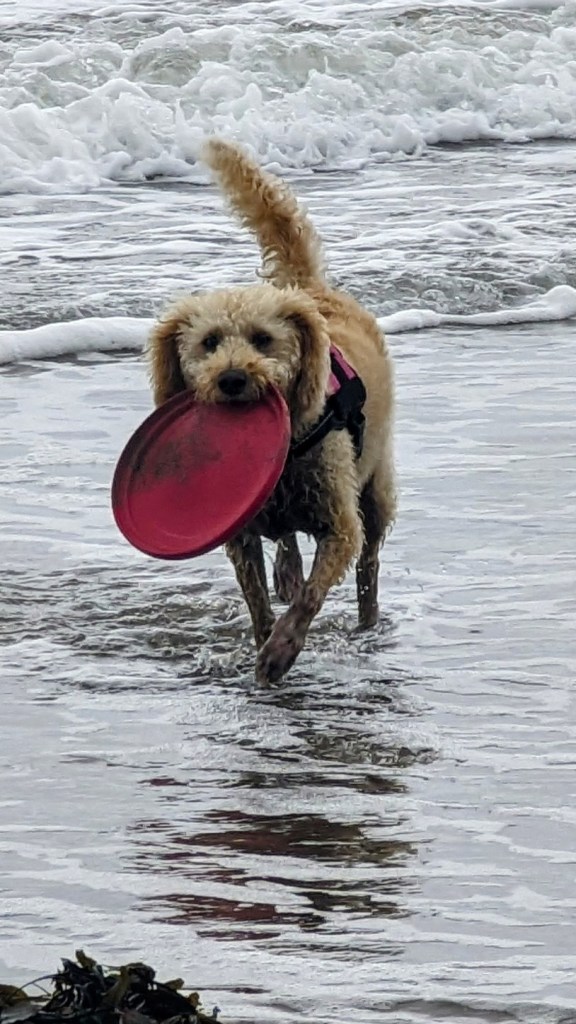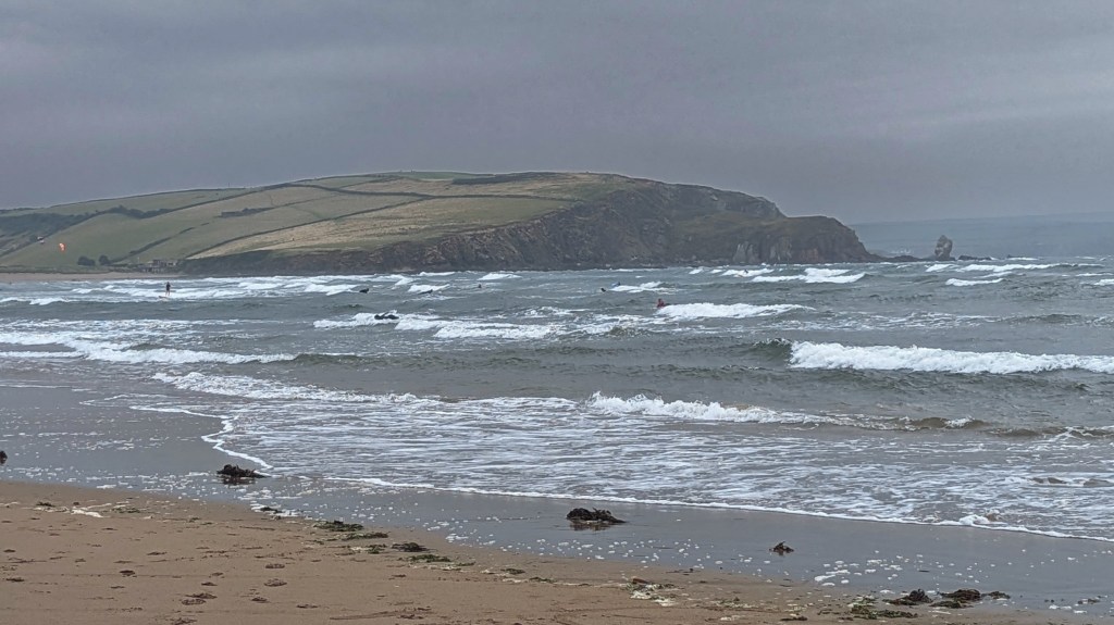 In the UK, you don’t wait for a warm day to go to the beach (as you could be waiting for months); you go when you have time! We went to a beautiful, local sandy beach. Although it threatened rain, it didn’t actually do so until we were back home safely!