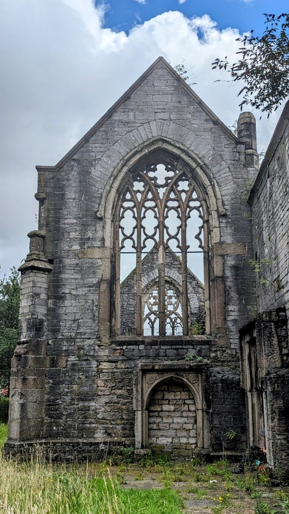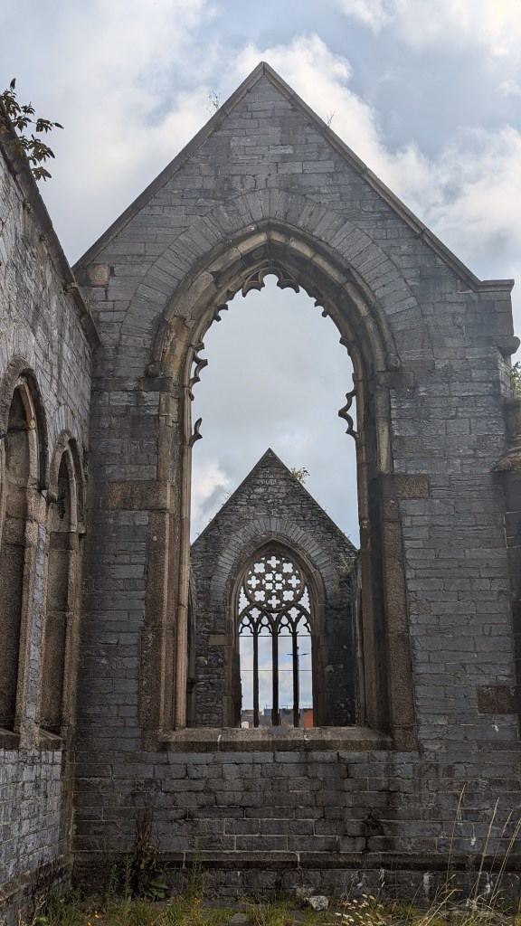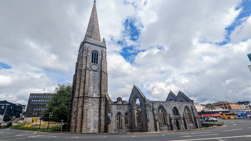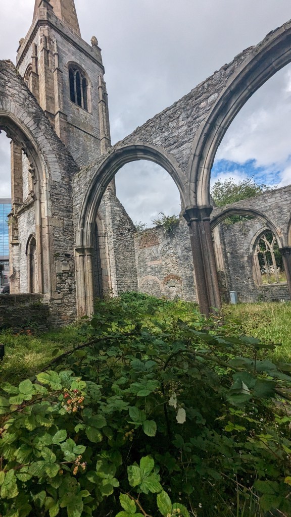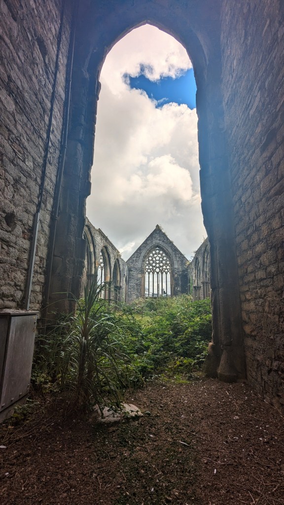 Because of Plymouth’s military importance (naval and air), it was very badly bombed during WWII. One of the historic churches is merely a shell but has been preserved…in the middle of a roundabout!! The place is locked up but I found it so pretty that I took photos anyway. Locked up is suggestive. I could have easily stepped through one of the empty windows, but respected the chains.