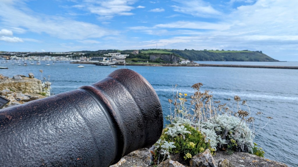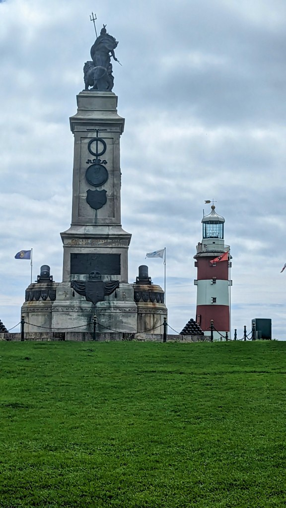 …and a memorial commemorating Sir Francis Drake’s victory was alongside the lighthouse.