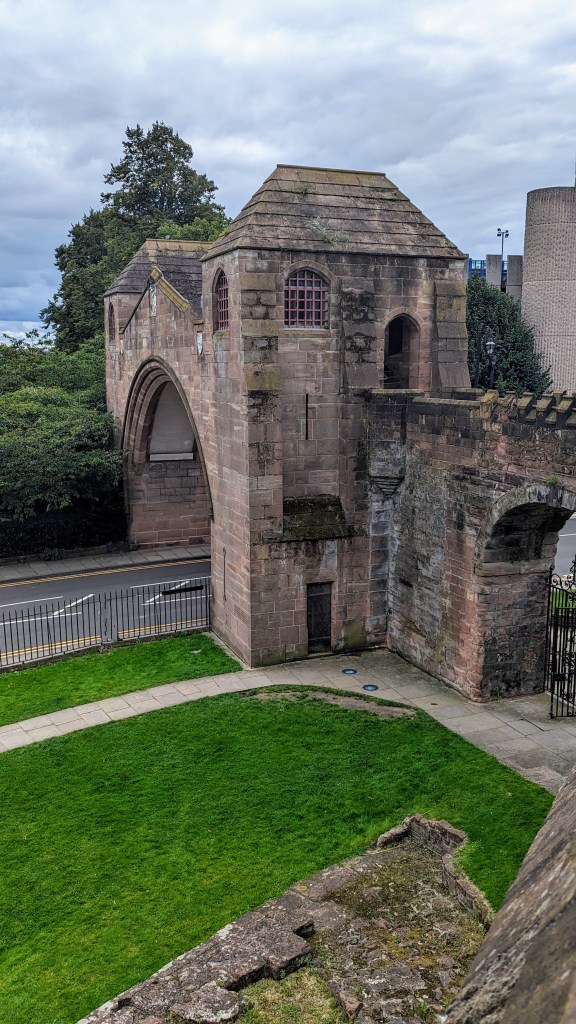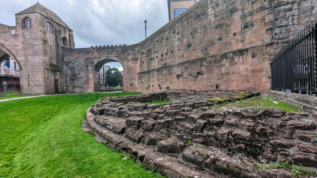 Chester is a very interesting city as it was a stronghold during Roman times and continued to be an important city through the middle ages to the present. On top of that, it’s beautiful (though, once more, the weather could be improved upon!) During the Roman occupation, the river was deep enough to accommodate ocean vessels. However, the river silted up and the city lost favor for a time after medieval times.