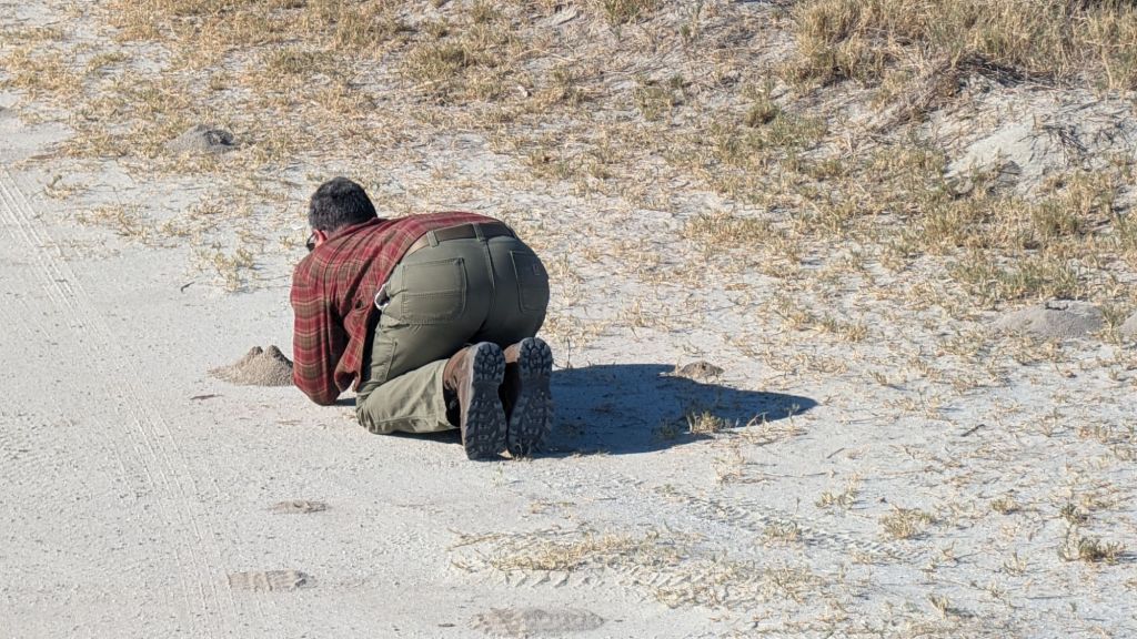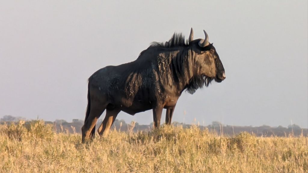 Because we’re traveling in style (in the cheapest rental car we could find) rather than hitchhiking, as I’ve done previously, we’ve bought a little cooler that we’d filled up ‘just in case’, so we had plenty to eat! We also are very easy to entertain; Dan entertained himself watching some termites and a beetle, and I (and, I suspect, some wildebeests),, entertained ourselves watching Dan!