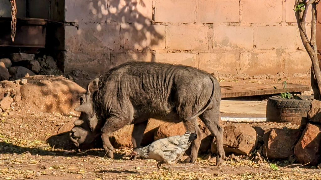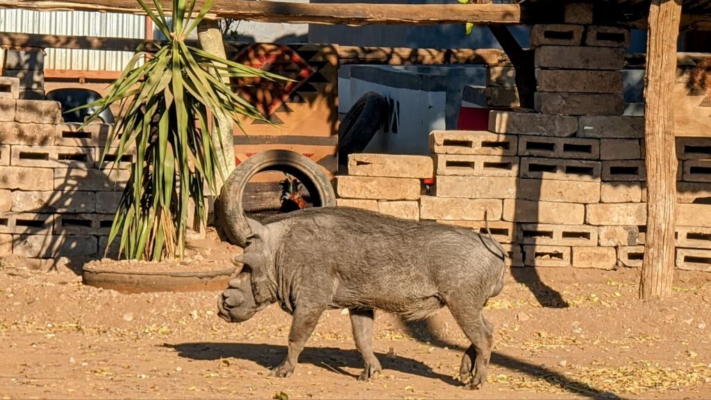 On our walk back ‘home’ we saw a warthog walking through town with a chicken. My initial thought of ‘What the heck?’ was quickly followed by ‘Life’s good!’