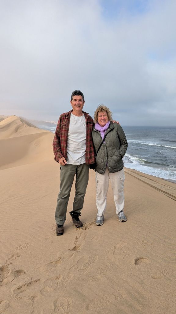 As remarkable as all this was, the main event was definitely ‘where the desert meets the ocean!’ It was breathtaking…and nothing like I’d seen in Kuwait! I remember being shown a reel-to-reel movie in my grade school cafeteria that detailed the deserts of Africa. They showed the spectacular scenes of the huge sands dunes dropping off directly into the ocean. We never actually got to Sandwich Bay because the tide was coming in and blocked out path 😭