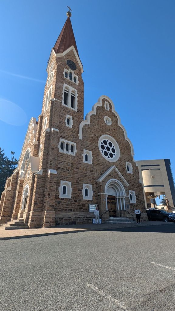 I’m beginning to think that the translation of Windhoek is “closed” as, once more, things just weren’t open! We wanted to visit the National Museum of Namibia last week, but it was closed on the weekend. So we made sure that we returned on a weekday this time. But, again, it was closed! This time it was to clean the parking lot!?! I felt sorry for a tour group that arrived; at least we hadn’t paid for the experience of not getting into the museum! We also tried to visit a church landmark that was located in the middle of a round about, but it, too, was closed.