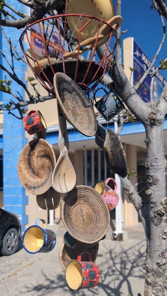 While in Maun, Rhia was intent on finding the town center (the only part of Maun I remember from 36 and 33 years ago) which turned out to be a little more difficult than one might think. The center of a town is usually where the tall buildings are, or where Google shows a large concentration of businesses and restaurants. But no building here is more than two stories, and we have found that Google has been REALLY bad this whole trip! We eventually ended up at some buildings across from the airport, and discovered that that area was considered part of the old town, but that we had actually traveled through the new town to get there?!? So we walked around the old town, visited some of the stalls, walked through some back alleys, exchanged money to pay for the safari, and bought a few souvenirs.