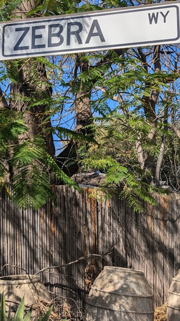 On one of the days, we decided to walk to find Zebra Way (a road that features in the novels about The Number One Ladies Detective Agency.) We’ve found Botswana women to be strong, powerful, and extremely entrepreneurial so the novels make even more sense now! There are currently 24 books in the series, and I have only read the first one. We walked through a beautiful neighborhood on the way to Zebra Way; sadly, the houses were surrounded by high walls so their true beauty is hidden.