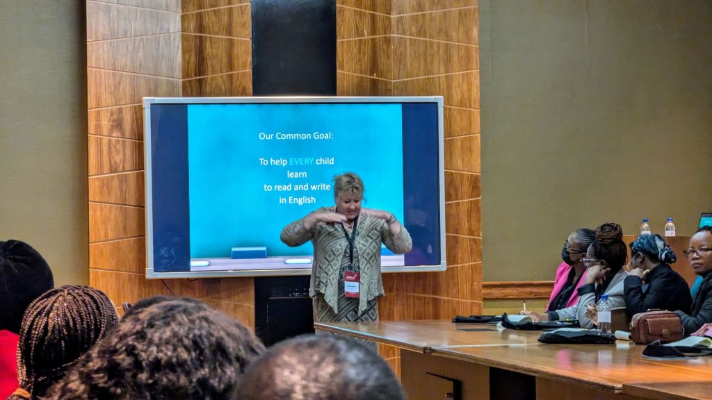 But then the conference was upon us and there was no time to feel maudlin as these were three busy days! This first African Reading Conference (AFREAC) is the brainchild of one of the greatest go-getters I’ve ever had the pleasure of meeting! Teacher Bonolo is the founder and director of Lowapi School (that’s been discussed previously) and does things like organizing an international reading conference, getting book donations for local government schools (40,000 this past year), setting up a mobile library at a local park (and finding volunteers to work it) etc IN HER SPARE TIME! I don’t think this lady will rest until every child can read! The conference was full of great presentations that were very enlightening! Our days ran from around 7:30 a.m. to 7:00 p.m. Here, attendees don’t complain that the days are too long or that there are too few breaks, but rather that there wasn’t enough time for questions! The conference was amazing, even for us non-teachers. Rhia was so well received! Sadly, people were turned away from her breakaway sessions because there was not enough seating. On the second day, people snuck in extra chairs from the hallway so they would not miss it.