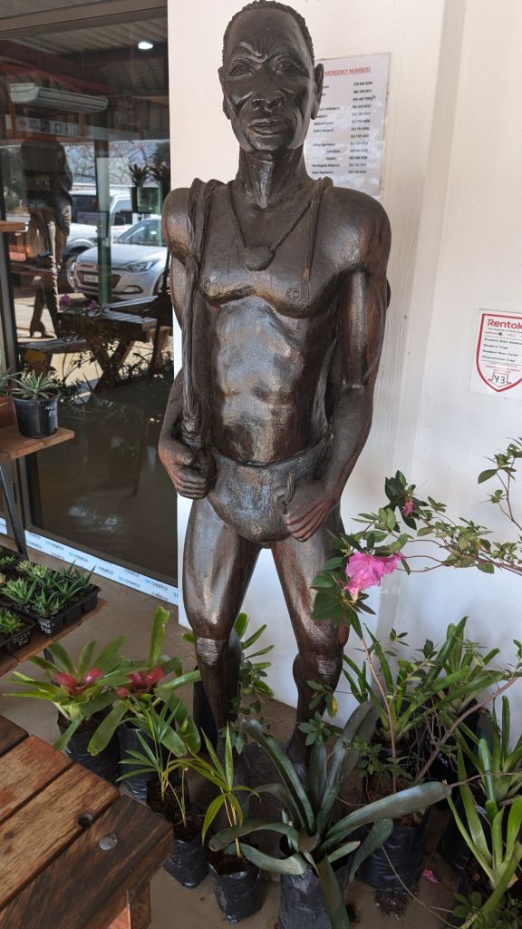 Leaving Botswana, we boarded a bus, and traveled back to where we started, O.B. Tambo airport. Not to fly in an airplane, but to rent a car and tour South Africa!!! 😃 But even before boarding the bus, we were talking with a fellow passenger and discovered she was an artist whose work we had admired at the National Museum in Gaborone!