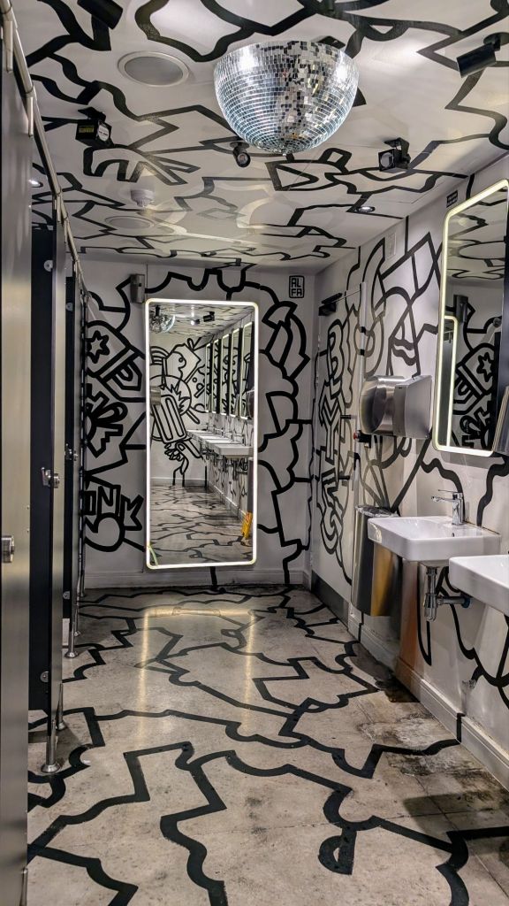 We ate at the Timeout Market, Cape Town, a collection of different types of restaurants; some of you may be wondering why I’m telling you this as food isn’t my ‘thing’. It still isn’t BUT I wanted to show you the toilet at this place… Whoa, don’t rush to the bathroom without describing the culinary delights from which we both partook. The building had been transformed into something similar to the food court of a mall, but with a consistent theme. They take their food to the next level! I had the best fish tacos I had ever tasted!