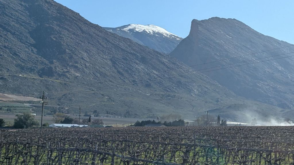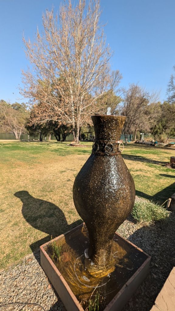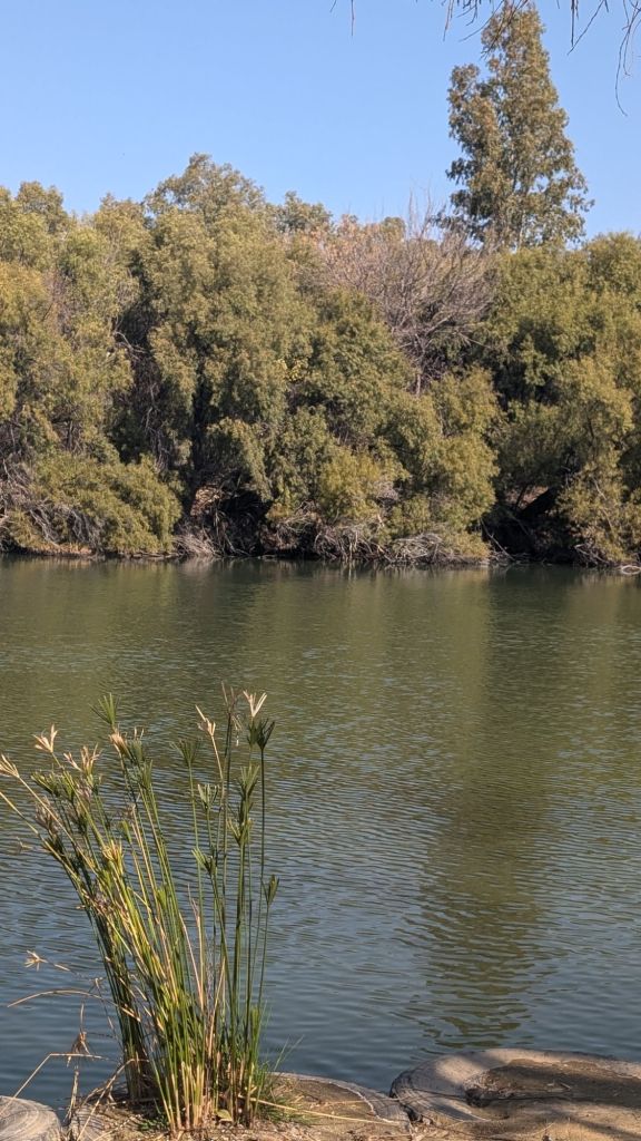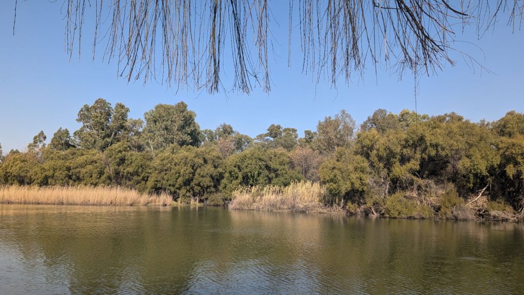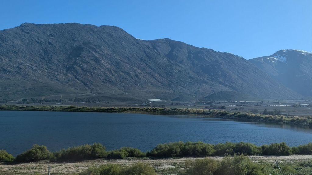 Our journey took us through mountains where the temperature dropped to around 1°c (33°f)! I’m not a fan of the cold so am glad that this afternoon, the temperature is around 28°c (82°f)! We’re staying right on a river in a little town called Christiana…now this is more my speed!