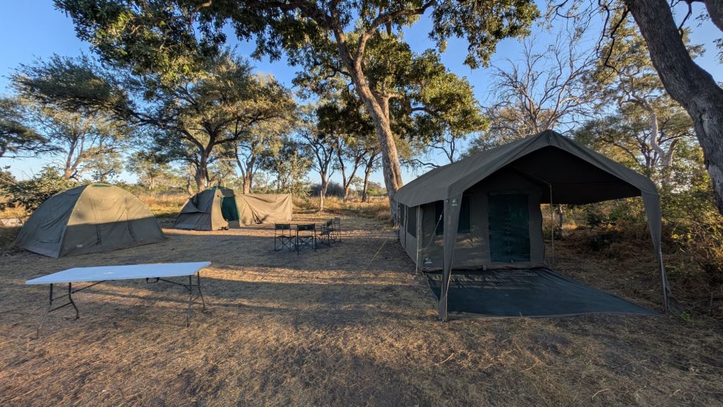 Our tent is the one on the right, the guides’ tent is on the left, and cook/camp hand’s tent is in the middle. The kitchen is behind the wind block attached to the latter tent.