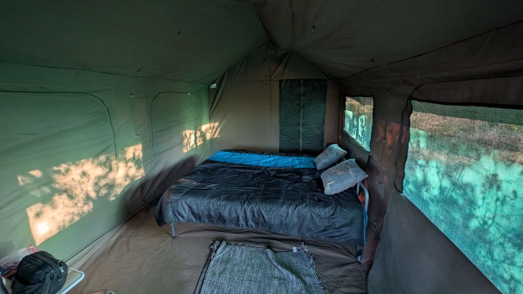The inside of our tent with a BED!!!