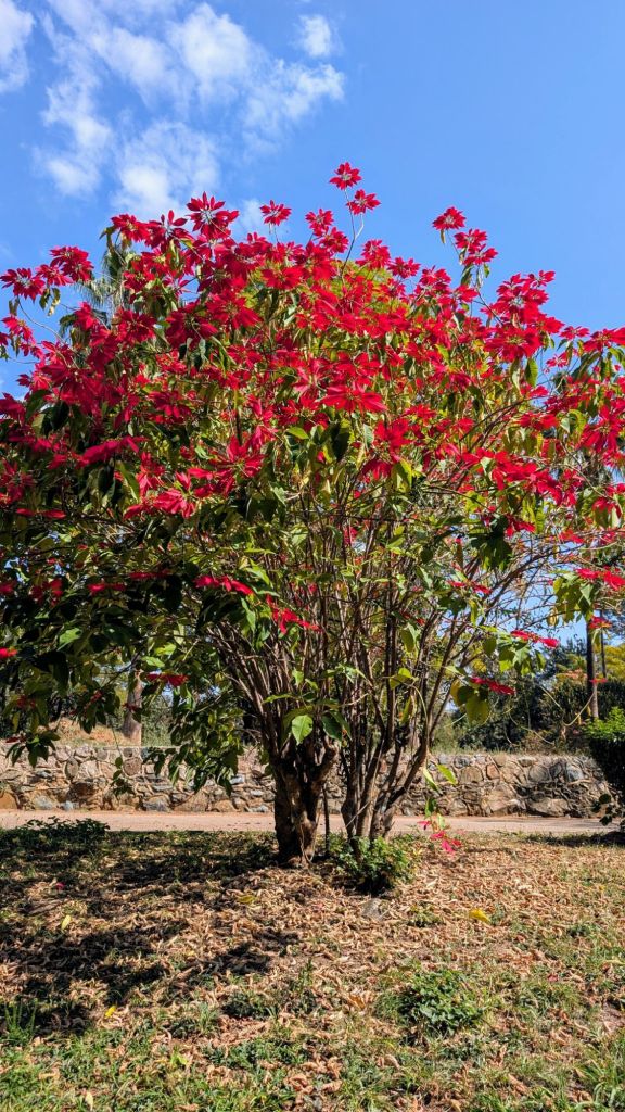 What I find so fascinating about Africa is its huge range of ecosystems and biology. We have taken thousands of photos of around 100 different animals during our safaris, and seen a hundred more that we did not take pictures of. Another example is that UNESCO cites Africa as home to 43% of the 701 species and subspecies of primates in the world. And as far as cool plants go, Bulawayo’s parks, and neighborhoods have provided some interesting experiences. For example, I had no idea that poinsettias grew into trees!