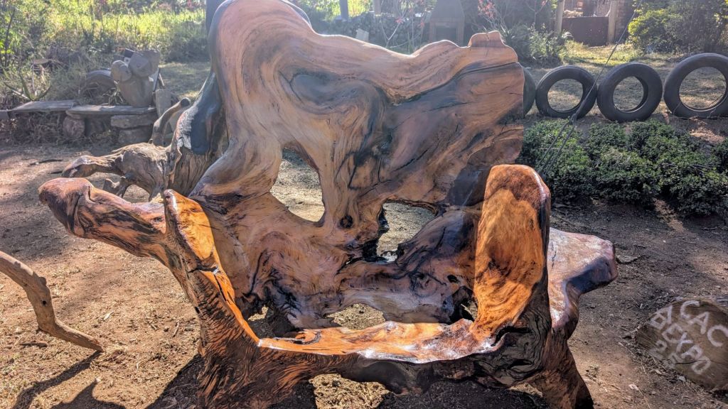 Outside the museum, Rhia found an extremely unique chair carved out of a burl of wood. So I naturally had get a picture of me sitting in it 😁