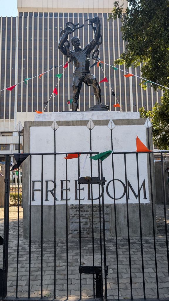 We ordered take-away because it was getting dark, but they took a long time to get the order ready, so we ended up ordering a taxi home. We were told about a local ride sharing app called Yango. Thank goodness our phones work here. Yango gave us the independence to navigate the city without the need to rent a car for a couple days. And the rides never cost us more than $2.50. So that is how we got ourselves to Downtown Lusaka and the Lusaka National Museum.