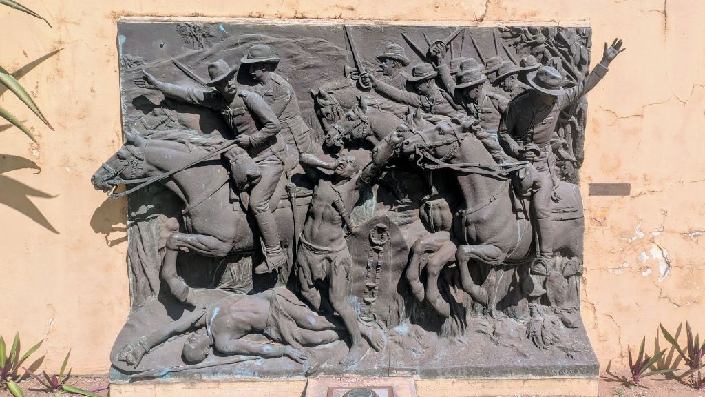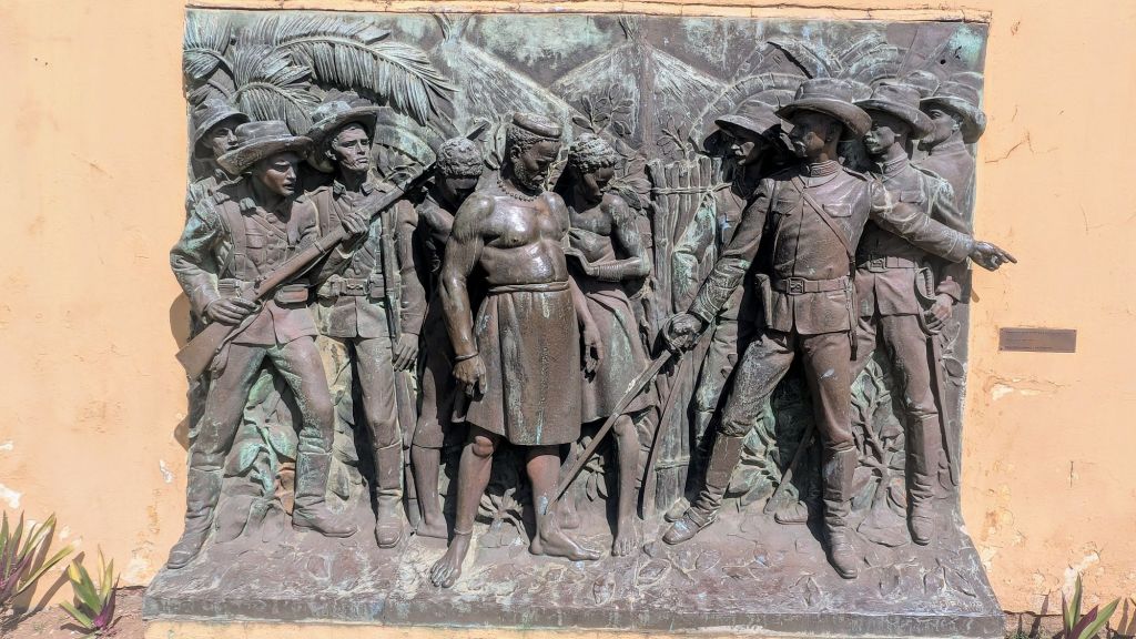 We’re not totally certain what the story is behind this statue. Someone did tell us the story and my best guess is that it has something to do with a French woman who either killed or protected a soldier by coiling a poisonous snake around his – or her own – head. This doesn’t sound very plausible so I think something may have been lost in translation 😂
