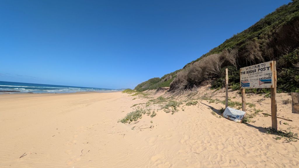 However, in one of the directions we can only walk about two miles…not because we run out of beach, but because we run out of country! Saying that the border post is low-key is putting it mildly…