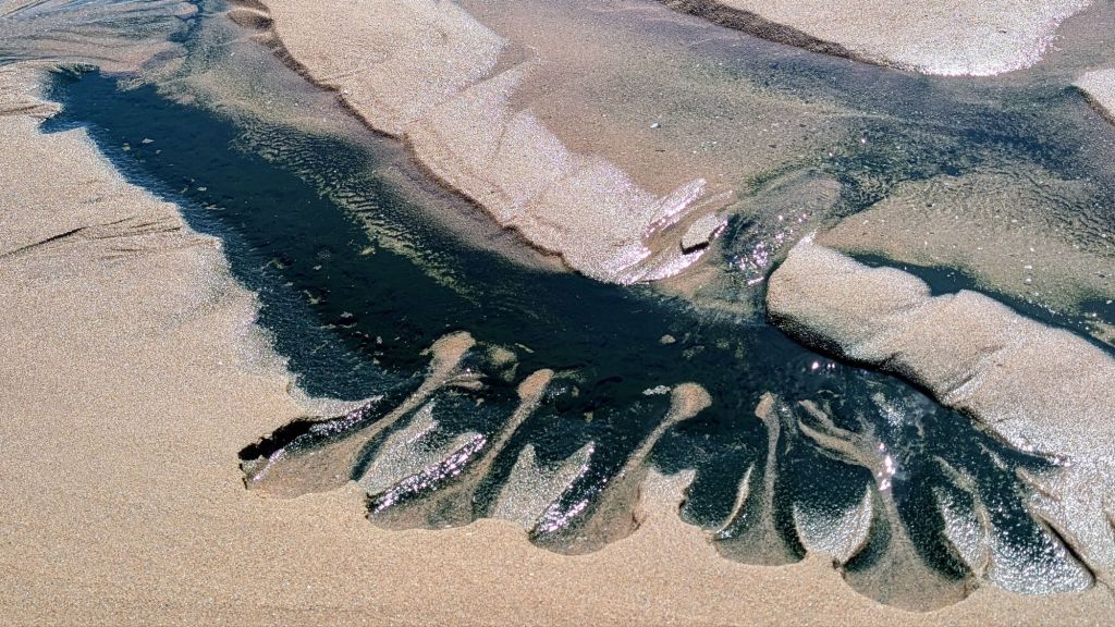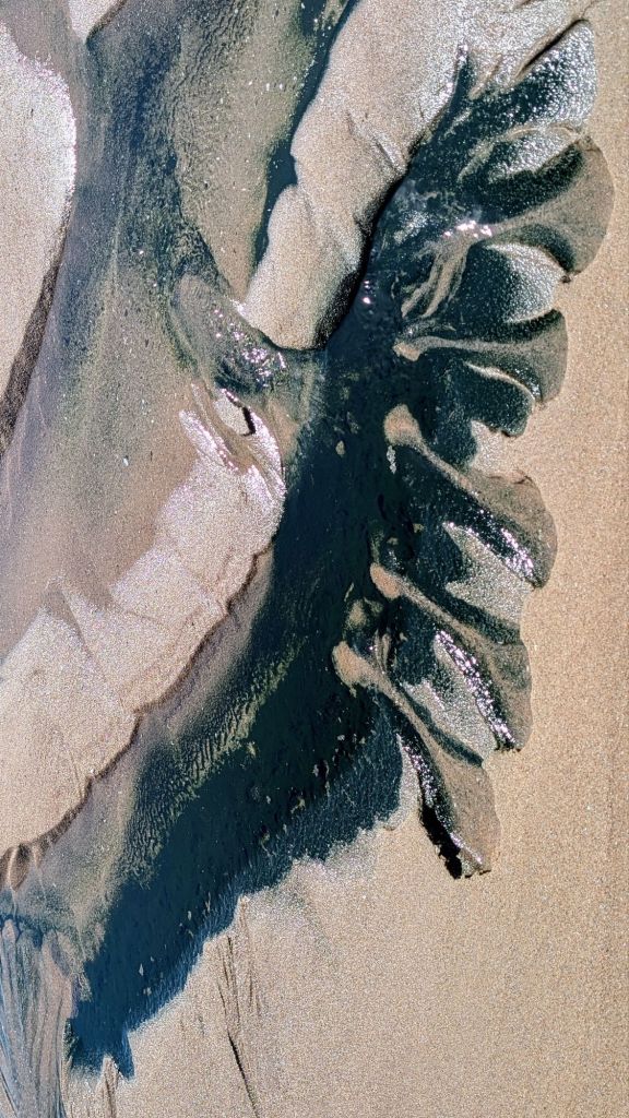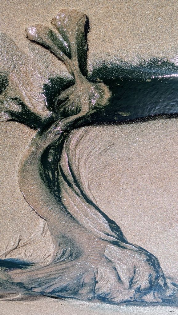 One of my favorite things to do is to find ‘paintings’ created by the ebbing tide and wet sand. These creations make me feel like an artist…though it’s Mother Nature, not I, who is the artist!