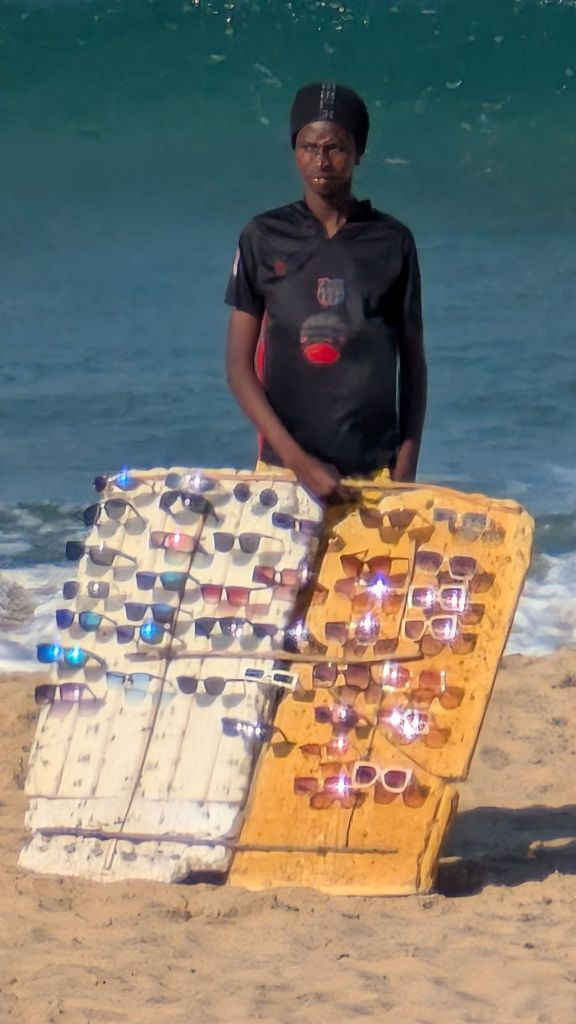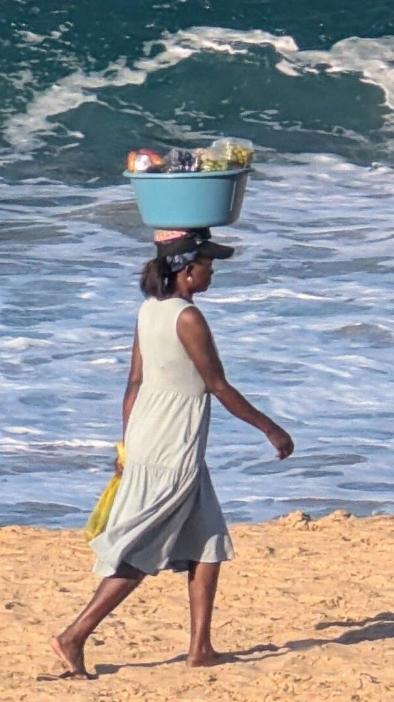 Selling sunglasses on the beach is a ‘thing’ here. It made me laugh inwardly every day to see these vendors, as I remembered a time…44 years ago. My brother came on honeymoon with my (ex) husband and I (in all fairness, brother and hubby were best friends BUT, looking back, I realize that it didn’t bode well for the marriage 🤷♀️…but wait, there’s more. We’d rented a five bedroom house and tried to persuade other friends to come too; in my naivety or stupidity, I couldn’t understand why they didn’t come 🤭). But I digress. We were short on cash, but ever the entrepreneur, I bought a load of cheap sunglasses and arranged them on a shelf pulled out of the refrigerator. Then the three of us played cards and the loser of a hand would have the tray of sunglasses strapped around their neck with a couple of belts; they then walked up and down the beach and wouldn’t return until they’d sold a pair of sunglasses 😎. I wonder if this is where I got my competitive spirit from??