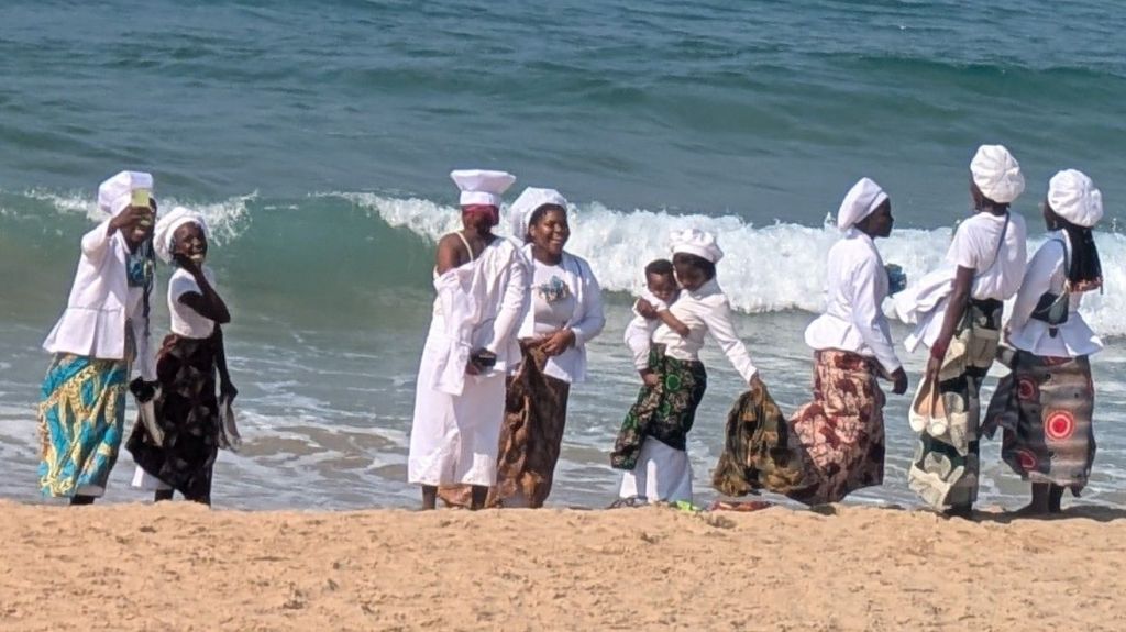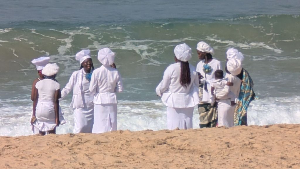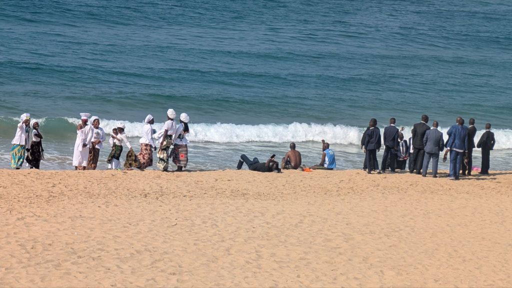 I think I’ve channeled a 99 year old lady since being here as I’ve thoroughly enjoyed sitting at ‘home’ watching people on the beach! Its remarkable what you see when you take a time-out rather than being in the throes of the throngs (I think I’m channeling Dylan Thomas too!) For example, after church on Saturday much of the congregation spent time on the beach…